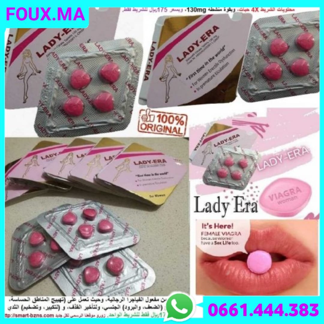 حبوب فياجرا (ليدي إيرا – Lady Era) الأمريكية الأصلية للمرأة: >>فقط حبة واحدة بقوة 130mg تشبع رغباتك مع الضمان<<, وهي أكثر قوة من مفعول (الفياجرا Viagra) الرجالية, وحيث تعمل على (تهييج المناطق الحساسة, وتضخيم البظر), وزيادة فوة (الإثارة, والشهوة, والقدرة) الجنسية, وعلاج (الضعف, والبرود) الجنسي, ولتأخير القذف, و (لتكبير, وتضخيم) الثدي والبظر, وتعتمد (صيغة, وتركيبة) مكوناتها على بحوث علمية حديثة, وعلماً بأنه لايوجد بها أي (آثار, ولا أضرار, ولا أعراض) جانبية نهائياً, وهي مستخلصه من (مواد, وأعشاب, ونباتات) طبيعية مثل الجنسنغ, والتي لها (الميزة, والقدرة) على (تقوية, وتحريك, وزيادة) النشاط الجنسي, وتحفيز (العلاقة, والرغبة) الحميمية والجنسية, كما أنها (محفزه وفعال, ومخصصه) للمرأة, ويعتبر استخدامها لتغيير الروتين الممل لتقوية قدرة الحياة الجنسية, وحيث إنها تولد شعوراً عميقاً لزيادة (الإثارة, والمتعة, والشهوة, والمدة) الجنسية, ولعلاج (البرود, والرغبة, والعاطفة لظاهرة الختان) الجنسية, وخاصة عند إنقطاع الدورة الشهرية, وهي تفيد لإطالة المتعة مما يعطي تأثيراً (مهدئاً وإيجابياً, وثقة قوية), فهي تحتوي على (130 جرام) من مادة السلدينافيل التي تعمل على تحفيز هرمون الاستروجين ليساعد على رفع مستوى الذروة عند المرأة, وتوقظ فيها كل (الأحاسيس, والمشاعر) بالرغبة في الجنس, فهي حبوب القوة الطبيعية (المميزة, والبديلة) عن الفياجرا العادية, وكما أن لها تأثير رهيب على إشعال الرغبة الجنسية >> فمفعولها قوي يبدأ فورياً من أول استخدام <<, للشعور بالإثارة بنتيجة مؤكدة 100% يضمن لك حياة جنسية سعيدة, ومناسبه لجميع الأعمار بدون (جراحة, أو أدوية).